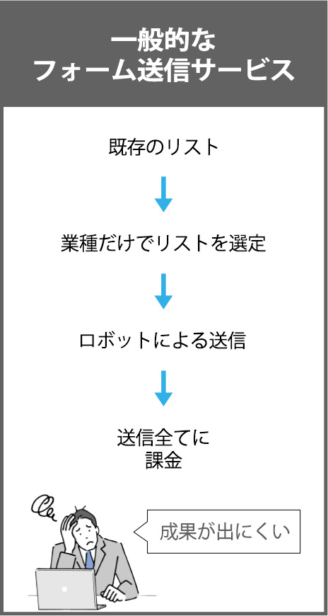 フォーム送信できた件数のみに課金。送信できなかったリストへの課金は一切ありません。