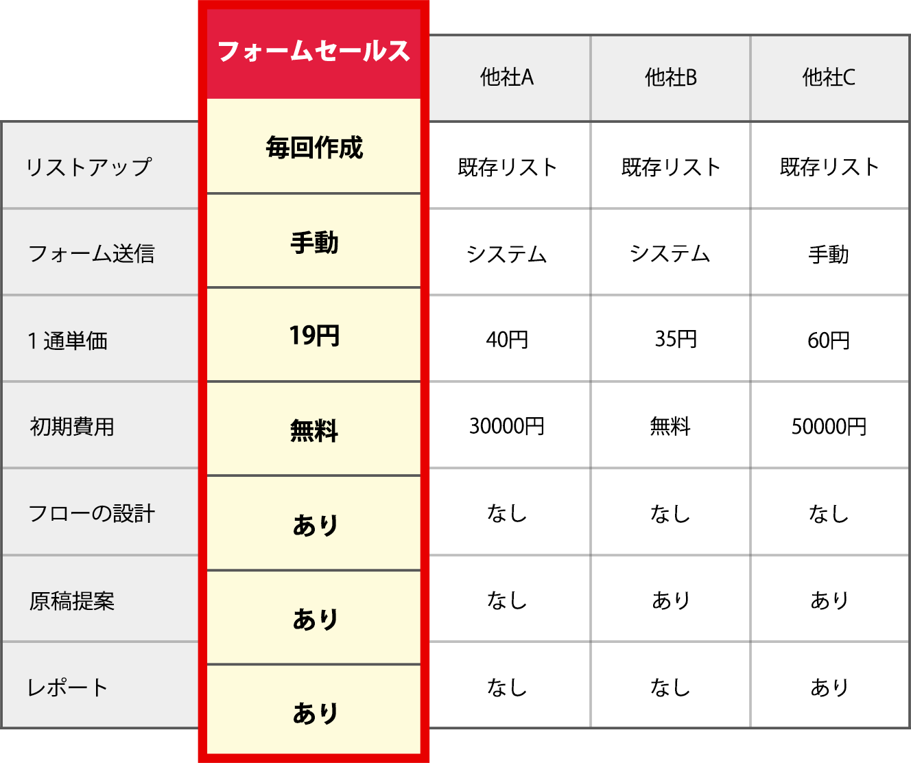 ※1:手動送信によるフォーム営業代行サービスでの比較