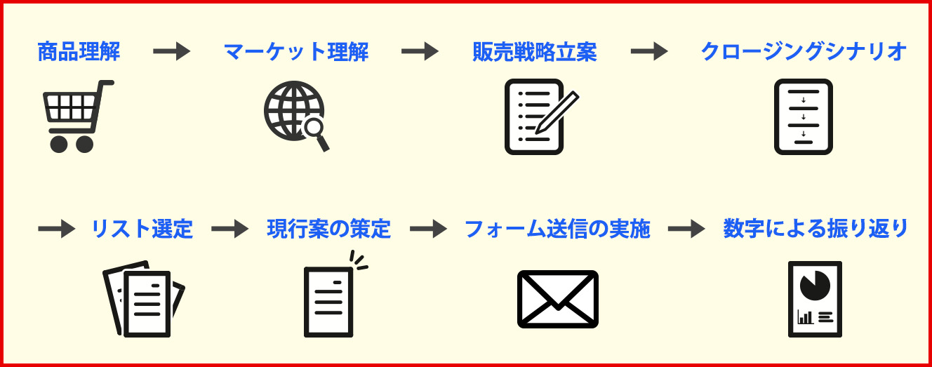 お客様のサービスやマーケットを細かく理解し、最適なフォーム営業のフローを設計いたします。